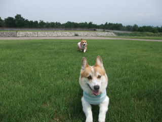 こたちゃんもはなちゃんも暑いけど、お散歩は嬉しいのね~~。